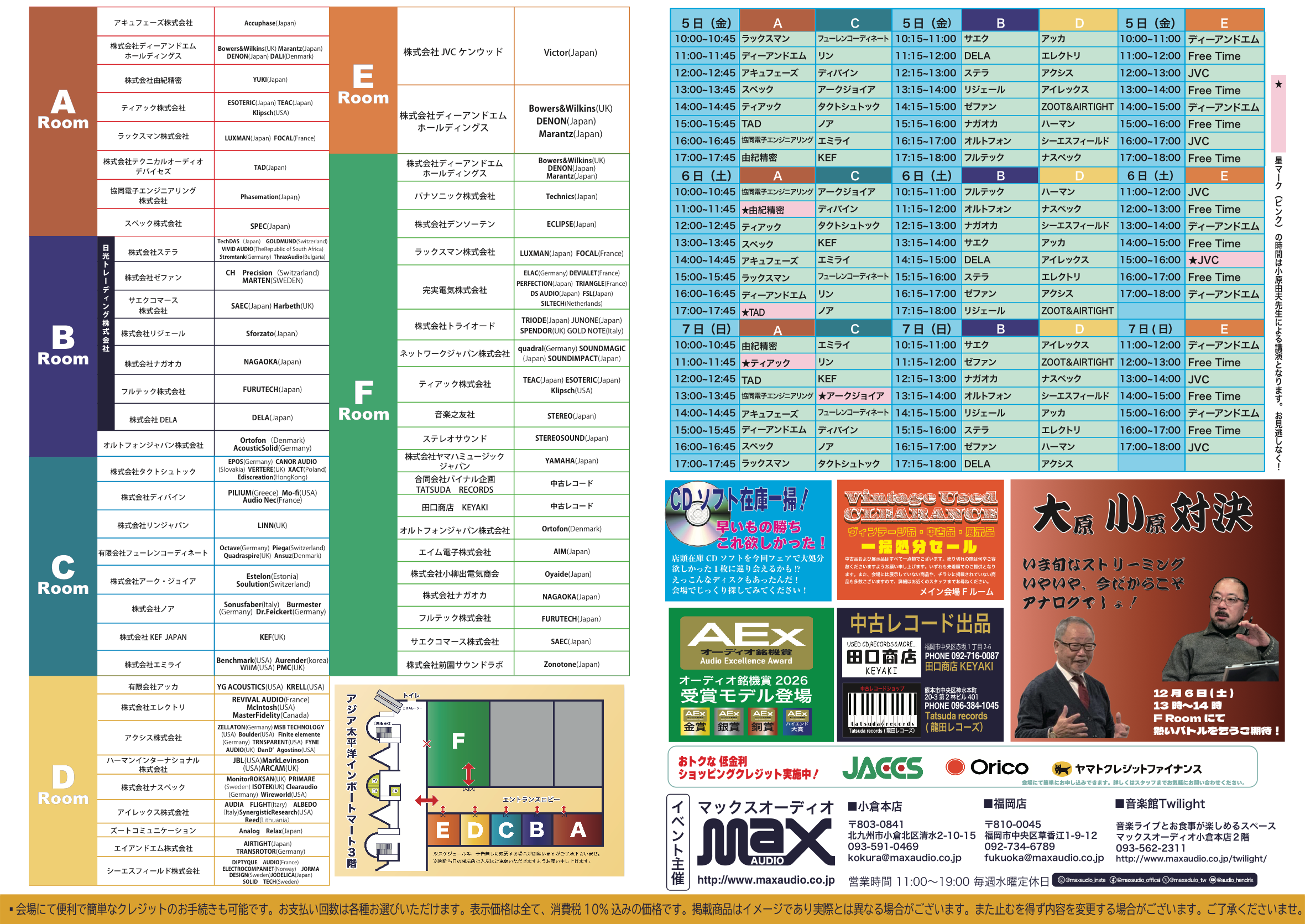来る2025年12月5日〜7日に福岡県北九州市小倉で開催されます、マックスオーディオ様主催の「第39回オーディオ&ビジュアルフェア」に参加させていただくことになりました!